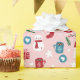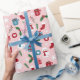 Cute Santa Snowman Stars Pink Pattern Christmas Wrapping Paper