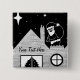 This original happy father christmas illustration on this customisable christmas button was drawn in pen and ink. The black and white christmas illustration shows a cute santa carrying his sack on the snow covered roof. Santa really stands out against the starry sky as he delivers his christmas gifts. A decorated christmas tree is in the window and a large star is shining in the night sky. This cute christmas button is customisable you can personalise it with you’re own message. This santa drawing is part of a collection of four black and white pen and ink christmas illustrations.