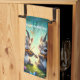 Wish someone special (or even yourself) a magical day with this kitchen towel, which depicts an AI-generated fantasy-inspired woodland scene of a pair of saolas playing violas by candlelight in a magical forest sprinkled with trees, colourful butterflies, and colourful flowers.