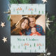 Imagine a delightful and cosy custom Christmas card that transports you to a charming winter scene with cute pine trees, adorable foxes, snowflakes, Christmas presents and a forest path. This nordic Christmas photo card features a heartwarming illustration of a simple and adorable pine tree forest with a meandering forest path that weaves through it, inviting you to imagine strolling through the serene woodland. The colour palette is inspired by winter tones, with shades of cool blues, snowy whites, and earthy greens while foxes and gifts bring in the vivid warm colours. Snuggle in this hygge winter forest scene with woodland foxes.