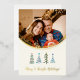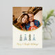 The final touch is a dazzling, non-editable real foil text under the photo and Christmas trees that says, "Merry and bright holidays", catching the light for a truly premium finish.