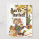 This personalised birthday invitation features a cute scarecrow and black crow. They are among colourful Autumn leaves and pumpkins. It's a great choice for any young child having a birthday party in the fall.