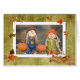 Cute autumn scarecrow couple with pumpkins and leaves.