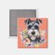 Cute Schnauzer Portrait with Flowers Magnet