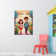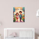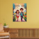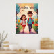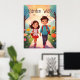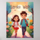 Cute School Kids in Garden Illustration AI Art Poster