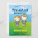 Amaze your guests with this cute preschool graduation invite featuring cute students with modern typography against a bright sunny background. Simply add your event details on this easy-to-use template to make it a one-of-a-kind invitation. Flip the card over to reveal a yellow and white stripes pattern on the back of the card.