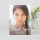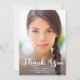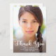 Graduation photo "Thank you" card with a cute, whimsical script font and a full-size portrait on the front. Personalised with your photo, your name, school name, and graduation year. The back has a 2nd photo and includes a message to your guests. Design a card for each guest, or write a general message for everyone who will be receiving a "Thank you" card.