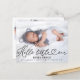 Lovely calligraphy photo birth announcement. Easy to personalise with your details. Please get in touch with me via chat if you have questions about the artwork or need customisation. PLEASE NOTE: For assistance on orders, shipping, product information, etc., contact Zazzle Customer Care directly https://help.zazzle.com/hc/en-us/articles/221463567-How-Do-I-Contact-Zazzle-Customer-Support-.
