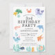 Cute kids' birthday invitations with a sea animals theme for any age with a gender-neutral design. It includes a fish, dolphin, shrimp, turtle, whale, seahorse, starfish, crab, and more.