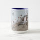 This pretty mug features my original photograph of cute sea gull birds on the beach, one of them has its beak open as if talking to another. Processed in an animated technique for a comic style. The left side of the mug has the words "Spill it!" for the slang of spill the tea or give me the scoop and the right side of the mug has the bird with its beak open, and the words "So I said..." for a cute beach style comic strip. You can click through the mug images to see the right side. The handle and inside of the cup are a blue tone to complement the artwork.