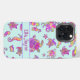 Fun sea life pattern smartphone case for the iPhone or Samsung Galaxy models. Light blue background, with multi-coloured turtles, starfish, sea horses, octopus, dolphins and more in pink, purple, yellow and green. Add the child’s name on a blue strip near the bottom. Font is fun printed text in pink.