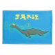 Bring a cute sea monster home! This pillow case features a happy monster from the deep frolicking with fish and squid. Add your own text to make it special.