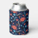 Cute sea pattern with crabs. Orange crabs, starfish, blue shells and algae on a dark blue background.
