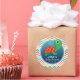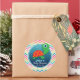 Personalise this cute, custom baby shower sticker with underwater aquatic green cartoon sea turtle and colourful teal, pink, yellow, orange, and blue chevron stripes background by adding mummy to be's name. It's a great neutral sticker for boy or girl ocean, sea life theme showers. Smaller stickers can be used as envelope seals for baby shower invitations or thank you cards. Use this cool baby shower sticker on party favours, gifts, and decorations, decor.