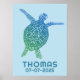 Cute Sea Turtle CUSTOM BABY NAME BIRTHDAY Art Poster