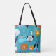 Cute seamless pattern with funny dogs on a blue ba tote bag