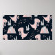 Cute seamless pattern with pink dinosaurs on a dar poster