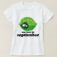 Shy little turtle for the Mum To Be with Due In September pregnancy announcement slogan. Colourful cartoon turtle with September Baby slogan.