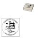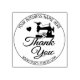 This "Thank You" stamp features a sewing machine with flowers and a bird, business name and thank you message.