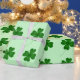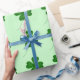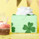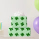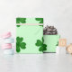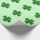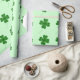 Cute and simple green shamrocks on a light green background. Shown here on gift wrapping paper.