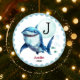 Cute shark christmas keepsake present personalised ceramic tree decoration