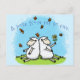 Cute sheep friends and butterflies cartoon postcard