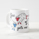 Cute sheep jumping "Coffee gets me jump started" Large Coffee Mug
