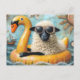 AI generated art of an adorable sheep on a swan inflatable flotation device