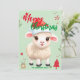 Cute sheep RAM santa Christmas Holiday Family name Card