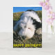 Cute old english sheepdog puppy photo greetings card. Front text reads "Happy Birthday", inside text reads "Hope you have a great day!" Text can be customised.