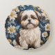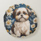 Cute Shih Tzu Dog White Daisy Flowers Round Cushion