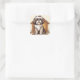 This charming design features an adorable brown‑and‑white Shih Tzu sitting proudly in front of a wooden doghouse, its fluffy coat and tiny pink tongue giving it an irresistible personality. The soft beige background keeps the focus on the pup while adding a warm, inviting feel. Cartoon‑style bones scattered around the doghouse add a playful touch that pet lovers will instantly adore.