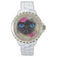 Cute Siamese Cat Elegant Pink Ribbon Illustration Watch