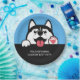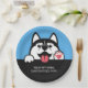Cute Siberian Husky custom text & colour Paper Plate