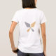 This stylish fashionable T-shirt has two stylised minimalist light silver and pale gold trowels crossing each other, with the text "Home is where you hang your trowel" in elegant refined cursive black letters. The same design with crossed trowels, but no text, is repeated on the back.