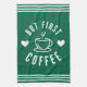 For the coffee lover. A gift for any occasion. A minimalist design 'But First Coffee' kitchen towel. For the barista, latte, cappuccino or espresso lover.