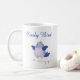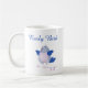 Early bird cute cartoon funny illustration of singing bird with blue and pink feathers.