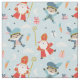 Cute Sinterklaas and Piet Pattern on Blue Fabric