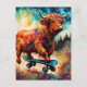 A cute funny skateboarding Highland Cow fantasy AI generated art