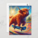 Cute Skateboarding Highland Cow Postcard