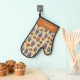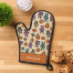 Add a cute touch to any kitchen this Halloween with this oven mitt that's ready to be personalised with a name. It features a pattern of cute stuffed animals with part of their skeletons showing along with patchwork style pumpkins.