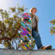 Cute multi-coloured skulls and hearts are set on a colourful background. This bright skull design will be one wild skateboard!