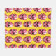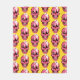 Cute skull pattern blanket with a cartoon illustration of a funny pink skull with rosy cheekbones and two cute ghosts in its eye sockets watching each other and smiling, little adorable spider standing on top of one of these spooky friends. This fun macabre design has bright psychedelic, trippy pink and yellow colours.