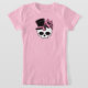 This cute skull is wearing a fancy little top hat with pink bows and flowers.