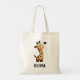 A personalised sleek tote bag design featuring a cute and quirky giraffe. The central element is the simple. This minimalist and modern design creates a clean look. The overall effect evokes warmth, connection, and a sense of the heartfelt.