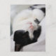 Postcard - Very cute image of a little tomcat sleeping on back and showing his cute soft cat face with sleepy cat eyes and a very sweet cat nose. Black and white cat, sleeping.