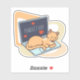 Illustration of Cute sleeping computer cat with Mid Century geometric shapes, red hearts and "Purrfect Day" text design