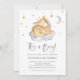 Twinkle twinkle little star! Invite family and friends with this customisable baby shower invitation. It features a cute watercolour sleeping baby giraffe with a grey cloud and moon and gold stars. Personalise by adding your own event details. This giraffe baby shower invitation is perfect for It's a Boy baby showers.