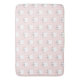 A bath mat a cute pattern of sleeping kitty cats. On a pink background.