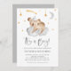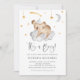 Twinkle twinkle little star! Invite family and friends with this customisable baby shower invitation. It features a cute watercolour sleeping baby koala with a grey cloud and moon and gold stars. Personalise by adding your own event details. This koala baby shower invitation is perfect for It's a Boy baby showers.